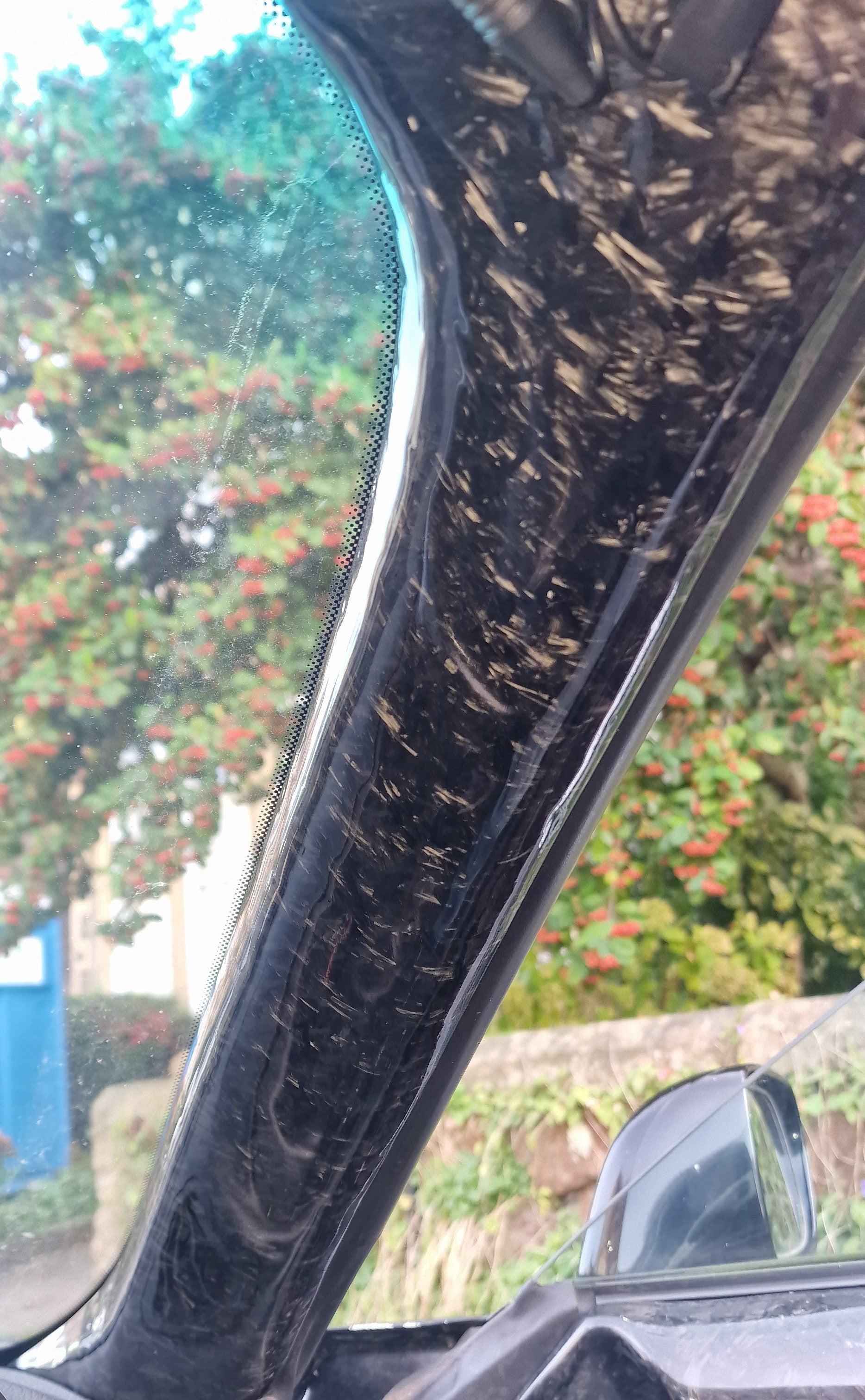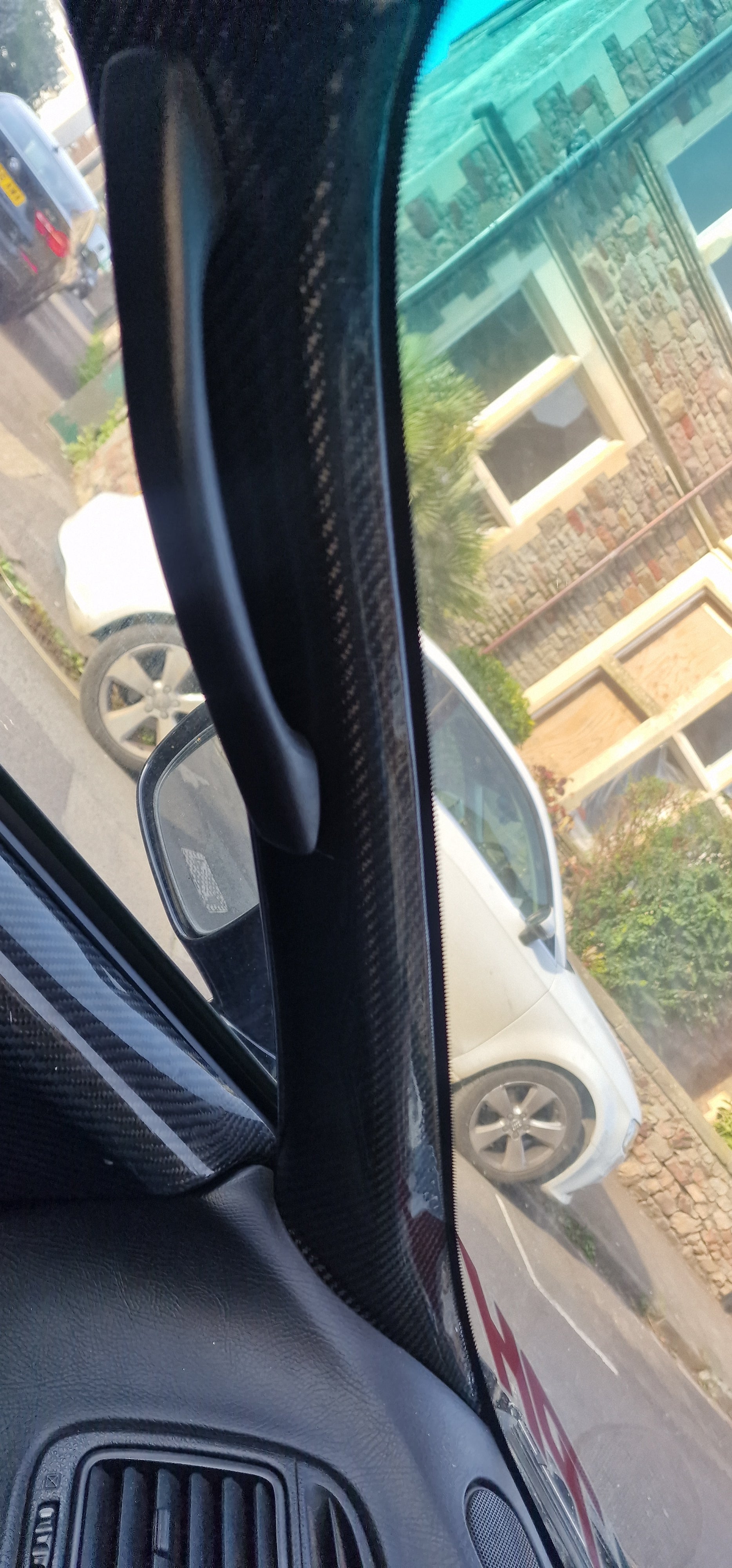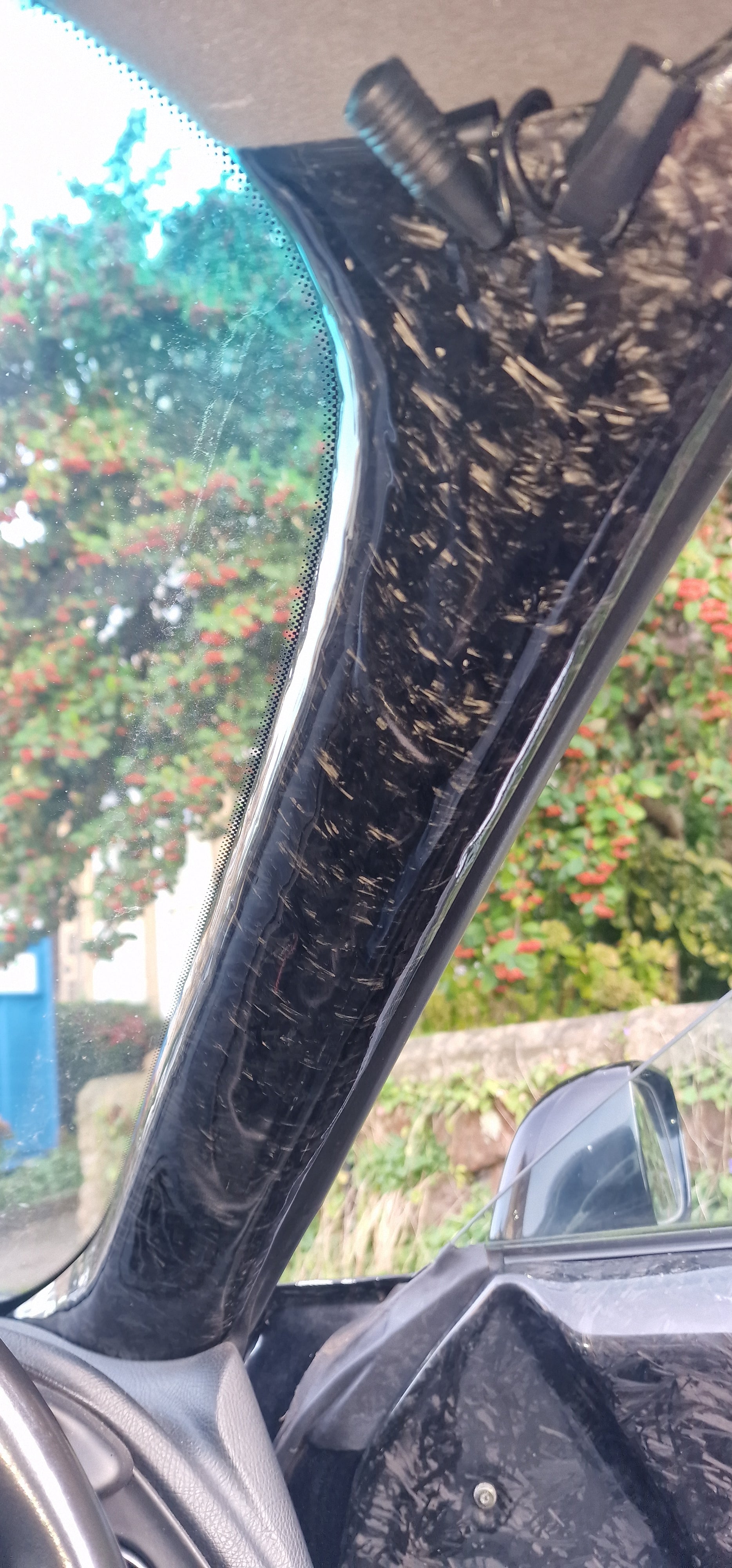 Carbon fibre over the original A pillars maintaining OEM fitment.